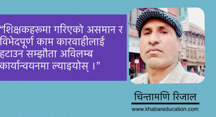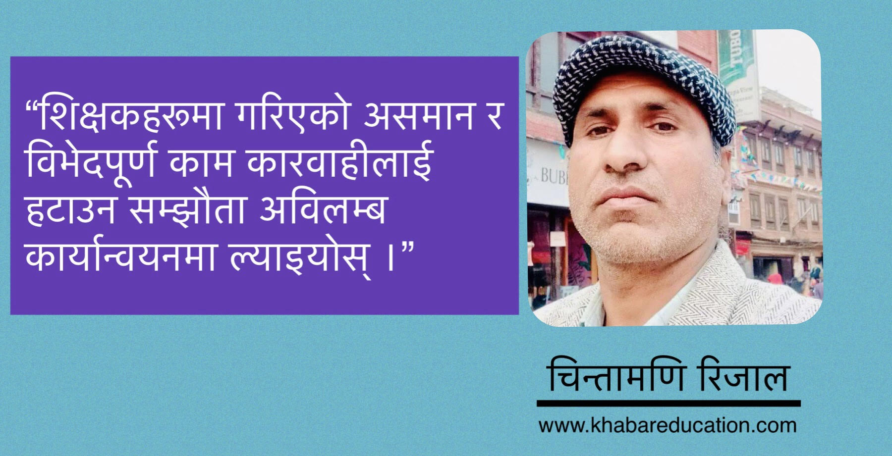 तथापि शिक्षकहरूमा गरिएको असमान र विभेदपूर्ण काम कारवाहीलाई हटाउन सम्झौता अविलम्ब कार्यान्वयनमा ल्याइयोस् । नजिकिदै गरेको स्थानीय निर्वाचनको मुद्दा मात्र नबनाइयोस् । सम्झौतासँगै शिक्षा क्षेत्रमा सञ्चार भएका उत्साहहरू जीवित राख्न र सम्झौतालाई अक्षरस लागू गर्न गराउन सम्झौताका दुवै पक्षधरहरू विशेष जिम्मेवार र इमान्दार हुनु जरुरी छ ।
