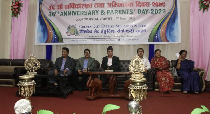 भक्तपुर/२५ जेठ-भक्तपुर नगरपालिकाका नव निर्वाचित नगर प्रमुख सुनिल प्रजापतिको प्रमुख आतिथ्यमा महाकालि स्थान, भक्तपुर स्थित गोल्डेन गेट ईङ्ग्लिश सेकेण्डरी स्कूलले ३६औं वार्षिकोत्सव तथा अभिभावक दिवस मनाएको छ । जेष्ठ २४ गते मंगलवार अभिभावक, विद्यार्थी, विद्यालय कर्मचारी तथा नव निर्वाचित जनप्रतिनिधीहरु विच ३६औं वार्षिकोत्सव तथा अभिभावक दिवस मनाएको छ ।
