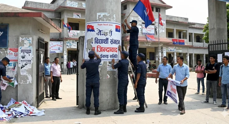 सुनसरी/११ वैशाख- कोशी प्रदेशका विभिन्न क्याम्पसहरूमा विद्यार्थी संगठनका अफिस, झन्डा, ब्यानर तथा पर्चा–पम्प्लेट हटाउन प्रहरीले अभियान थालेको छ । शैक्षिक संस्थालाई राजनीतिक गतिविधिबाट मुक्त बनाउने सरकारको नीतिअनुसार प्रदेश प्रहरी सक्रिय बनेको हो ।