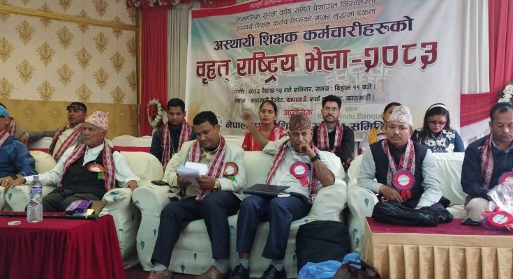 वैशाख १२ गते शनिबार अस्थायी प्रकृतिका शिक्षक कर्मचारीको बृहत राष्ट्रिय भेलाले नेपाल राहत शिक्षक राष्ट्रिय समितिका अध्यक्ष विष्णु खत्रीको संयोजकत्वमा राहत तथा अस्थायी प्रकृतिका विद्यालय शिक्षक कर्मचारीको पेशागत सुरक्षा र सम्मानको लागि “नेपाल अस्थायी शिक्षक तथा कर्मचारी महासंघ तदर्थ समिति गठन“ गरिएको थियो ।