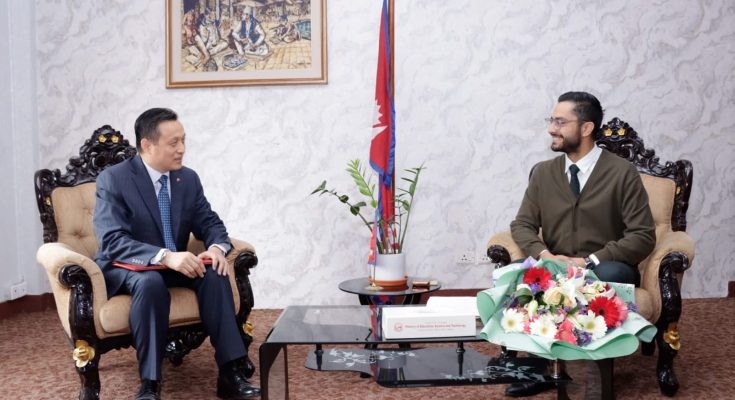 सिंहदरबारस्थित मन्त्रालयमा आज भएको भेटमा नेपालको शिक्षा, विज्ञान तथा प्रविधिको क्षेत्रमा चीन सरकारको सहयोग बारे। कुराकानी भएको थियो ।