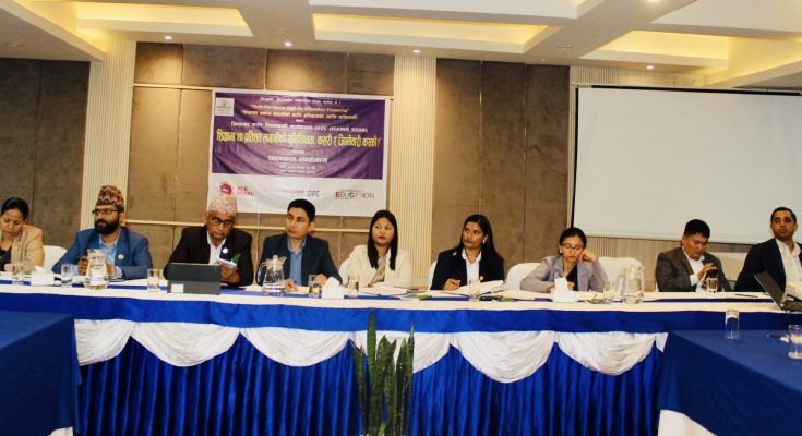 काठमाडौँ /१५ वैशाख – शिक्षा क्षेत्रमा लगानी बढाउने मात्रै नभएर सरकारसँग प्रतिस्पर्धी शिक्षाको माग विद्यार्थीहरूले गरेका छन् । एनसीई नेपालले आयोजना गरेको शिक्षामा २० प्रतिशत लगानीको सुनिश्चितता कसरी र जिम्मेवारी कसको ? विषयक छलफल कार्यक्रममा विद्यार्थीहरुले शिक्षा सुधारका लागि अनुगमन पनि आवश्यक रहेको बताएका हुन् ।